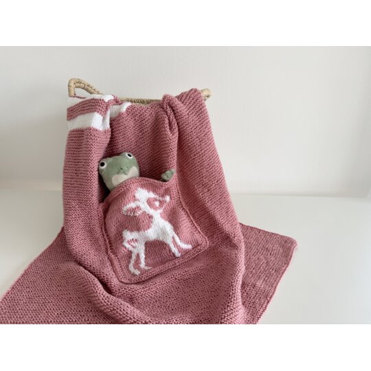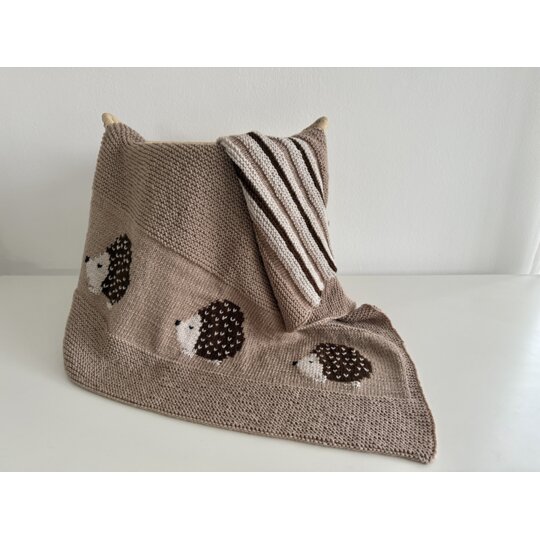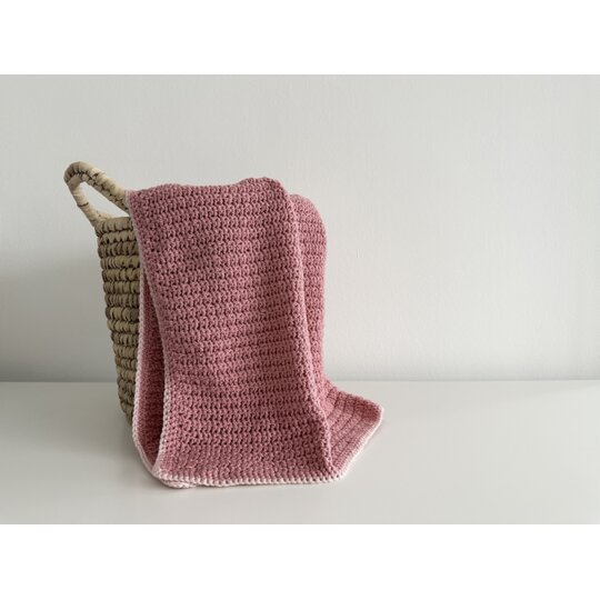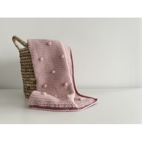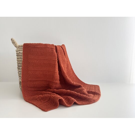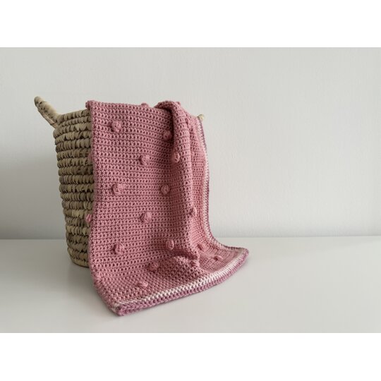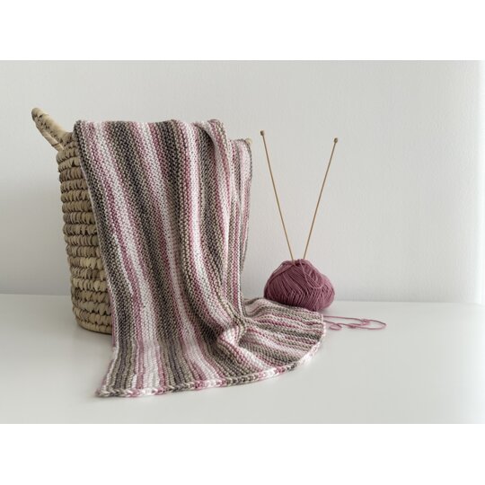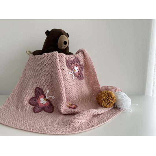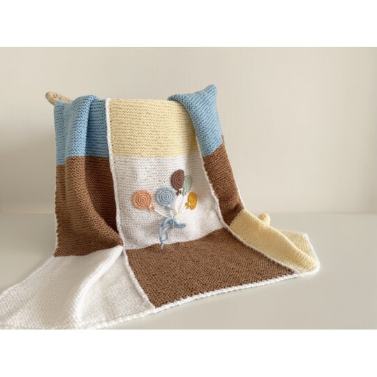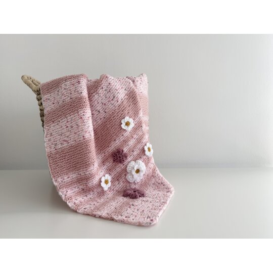 Mályva cirmos kötött takaró, horgolt virágokkal
