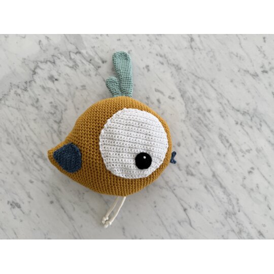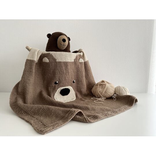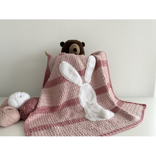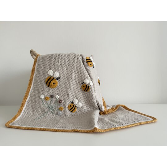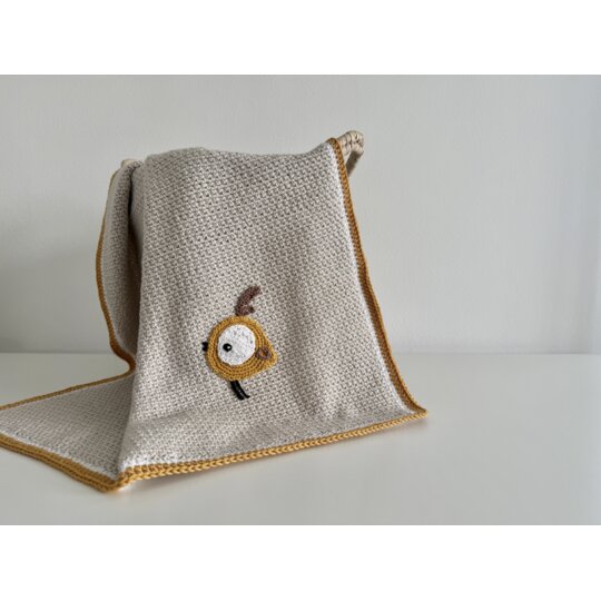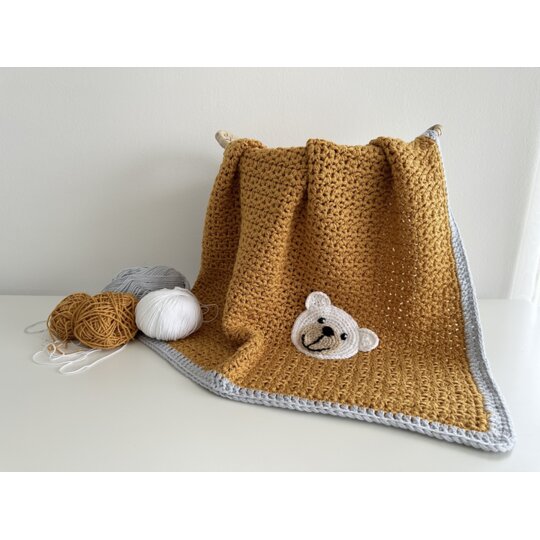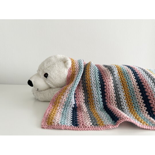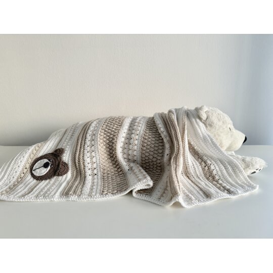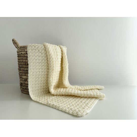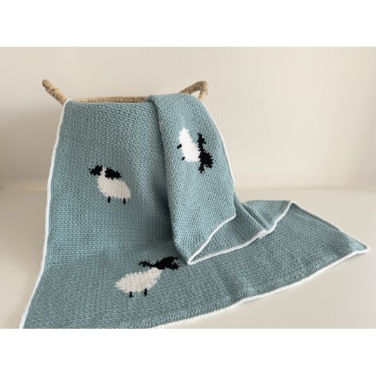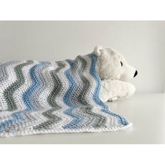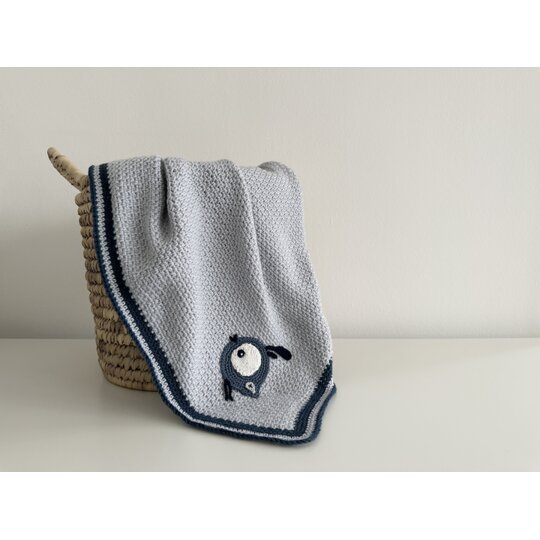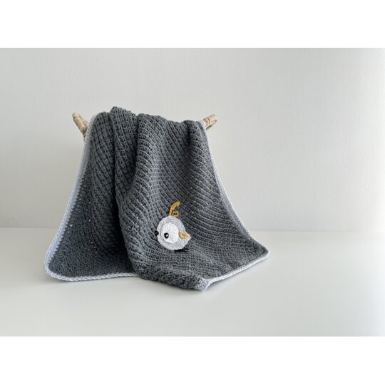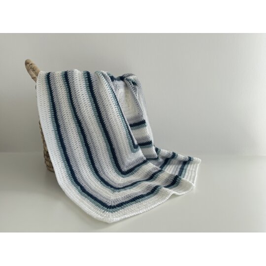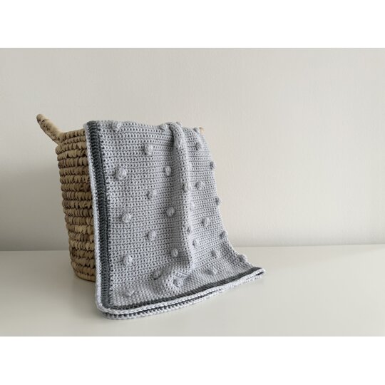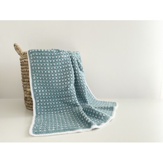 kék-fehér-szürke négyzetmintás horgolt takaró