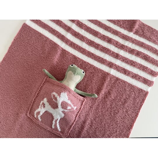 Rózsaszín kötött Őzikés zsebes takaró