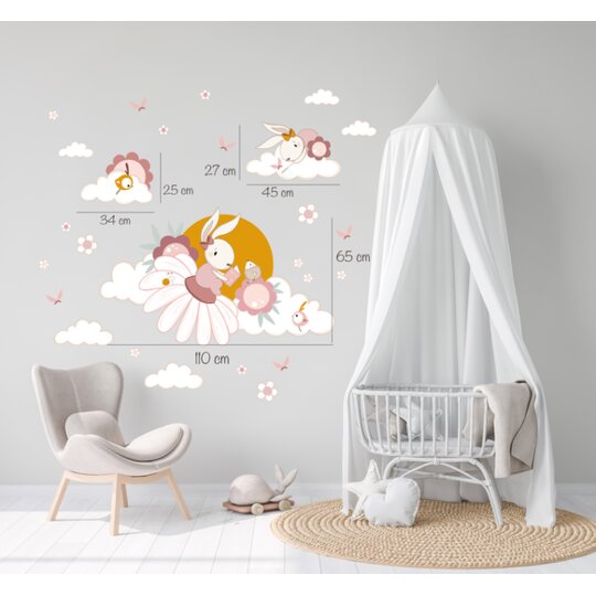 A matrica elemei külön kivágott részek, ezért tetszőleges elrenezésben helyezhető el a szoba falán. A képen látható összes minta a szett részét képezi.